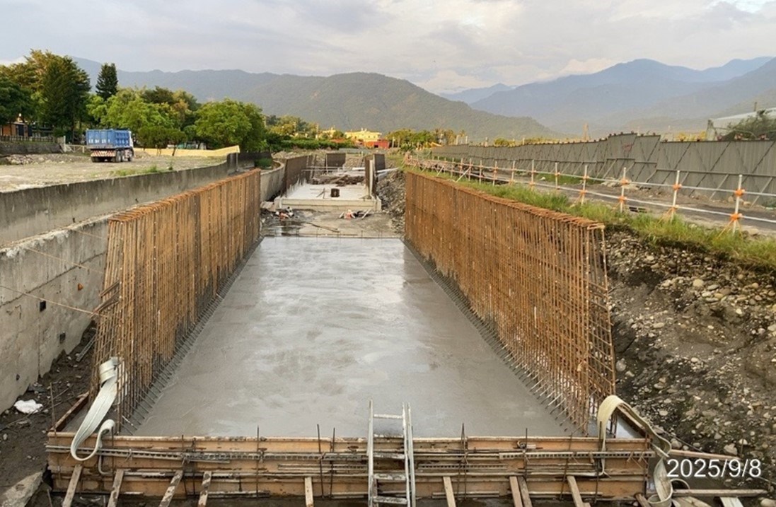 (3)第9工區5K+960~6K+060、6K+140~6K+150(RT)、5K+720~6K+150(LT)擋土牆基礎鋼筋、模板組立、混凝土澆置